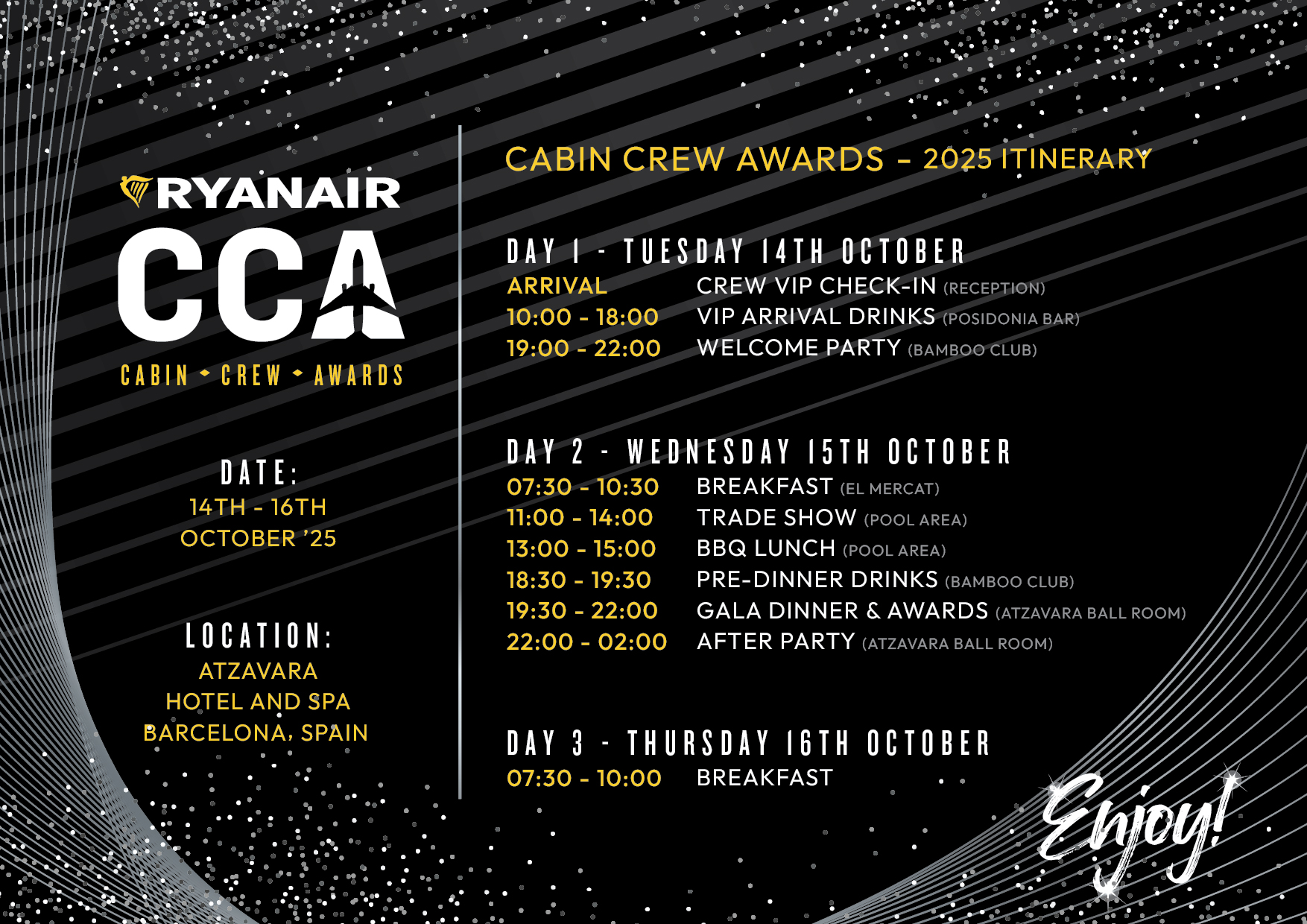 This year’s celebration brings together over 200 exceptional Cabin Crew from across the Ryanair Group. You have been selected from over 17,000 Crew Members, and your invitation is recognition of your exceptional Customer Service, operational standards, and engagement throughout the year.